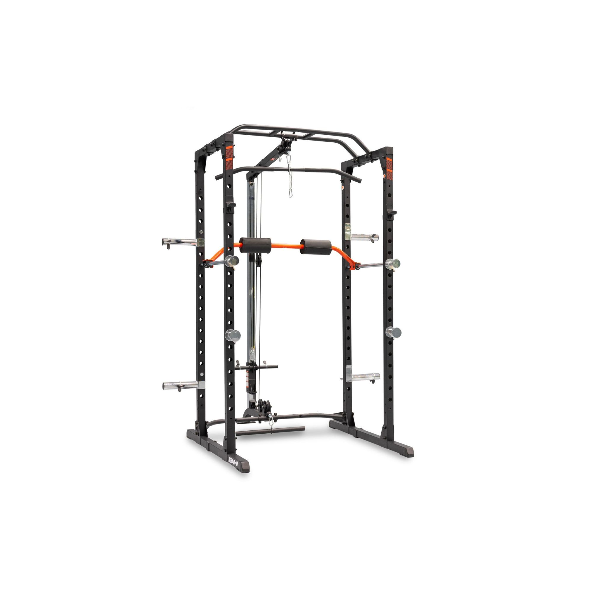 Power Cage med kabeltrækPower Cage med Kabeltræk er en komplet løsning til effektiv styrketræning i hjemmet. Dette alsidige power cage er udstyret med både høj- og lav kabel, en polstret ben support og praktiske opbevaringsmuligheder, hvilket giver en op