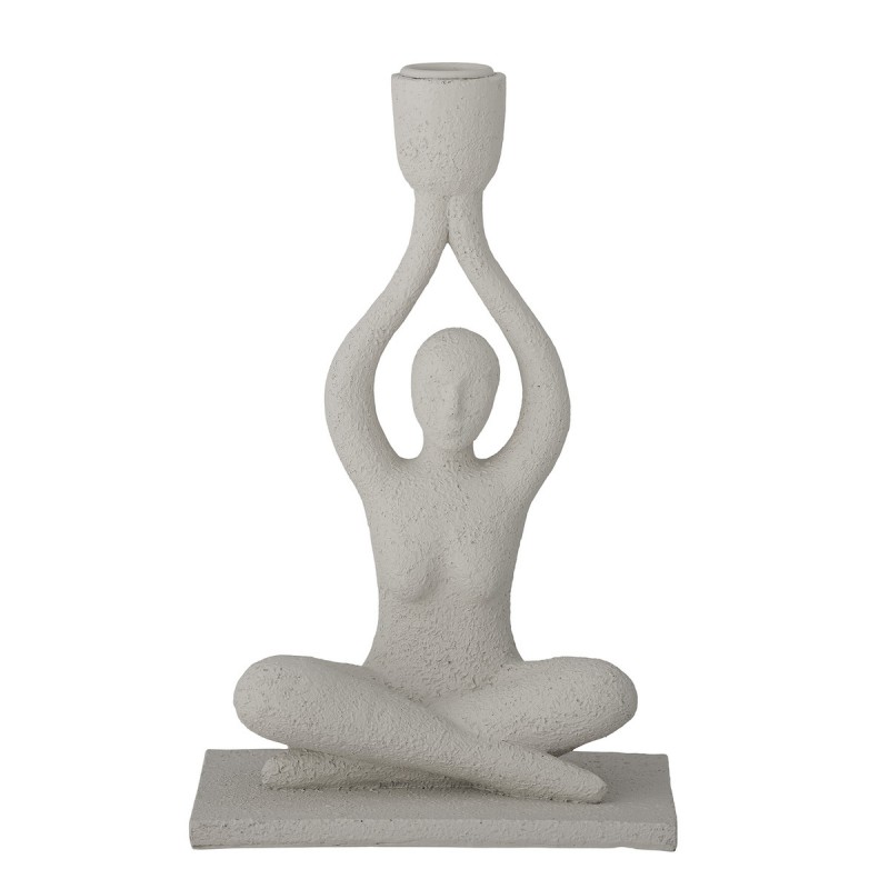 Mål:L: 15, H: 24, B: 11 cm. Materiale:PolyresinFlot råhvid lysestage af en yoga figur i meditations stilling,Lucie fra Bloomingville. Stagen er formet som en nøgen dame siddende i en yogastilling med armene oppe. I hænderne holder hun stagen der