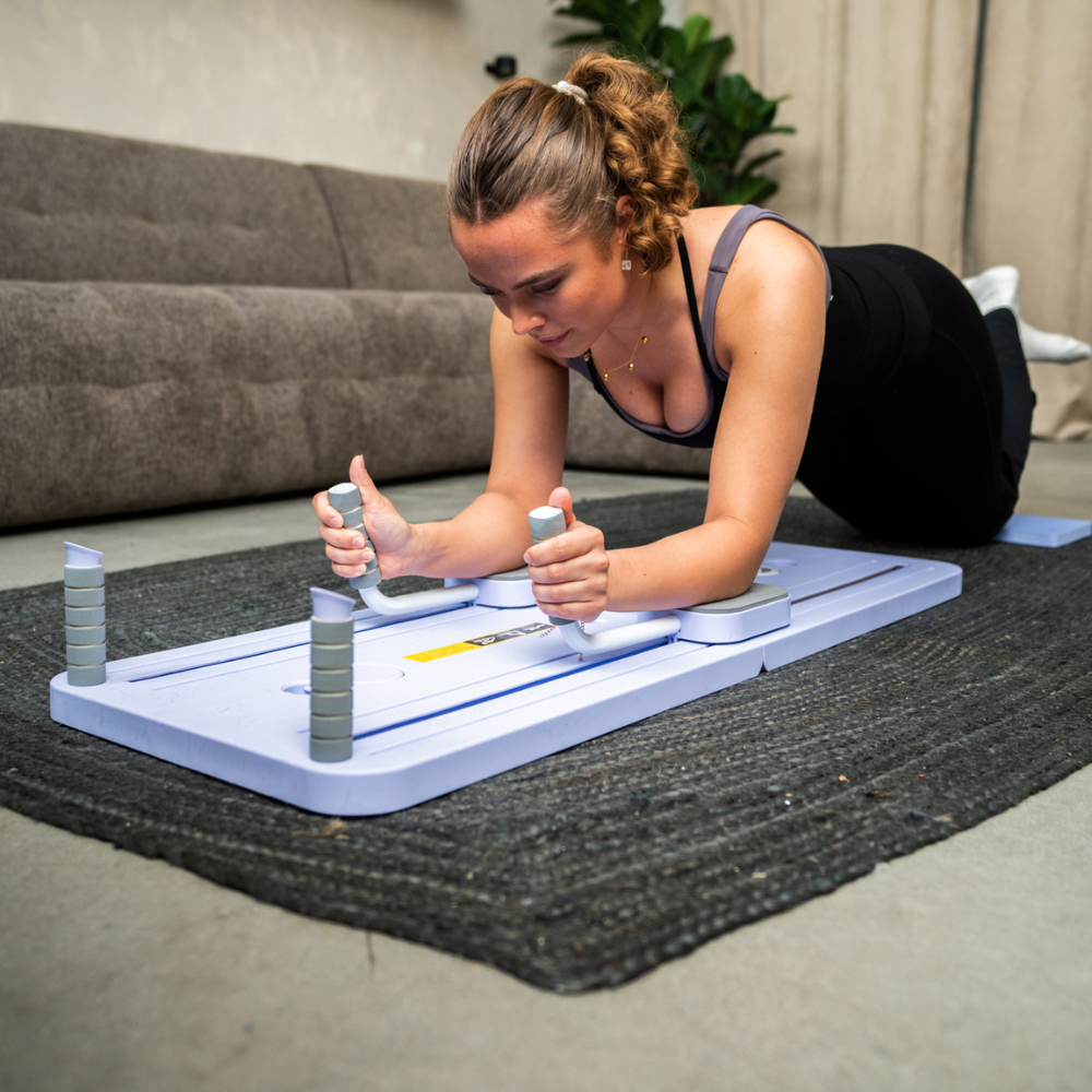 Pilareform boardet kombinerer det bedste fra pilates og reformertræning. Det er kompakt, justrbart og ideelt til effektiv træning af hele kroppen uanset niveau. Perfekt til hjemmetræning med fokus på styrke, mobilitet og core.